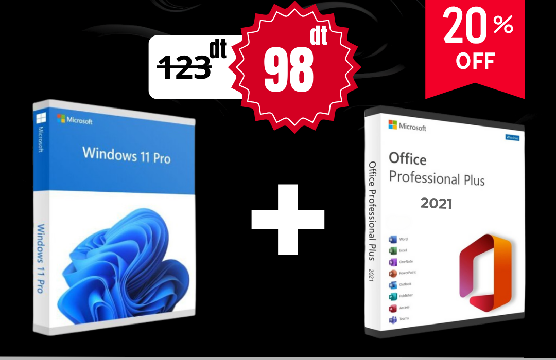 Windows 11 Pro + Microsoft Office Pro Plus 2021 Vous pouvez l'acheter à 98 DT à la place de 123 DT