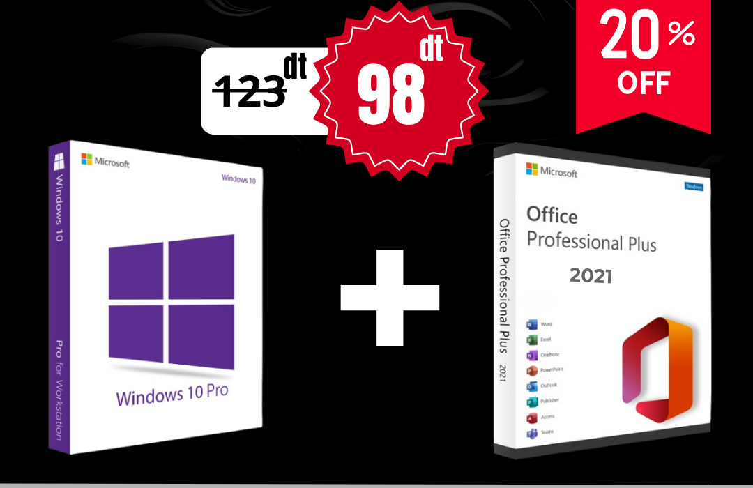 Windows 10 Pro + Microsoft Office Pro Plus 2021 Vous pouvez l'acheter à 98 DT à la place de 123 DT