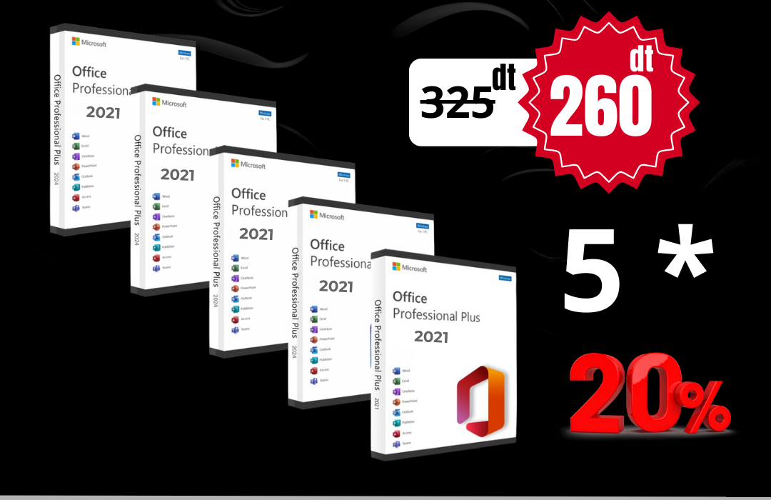 5 Licence Microsoft Office Pro Plus 2021 Vous pouvez l'acheter à 260 DT à la place de 325 DT